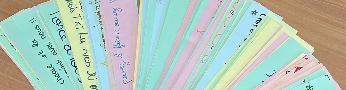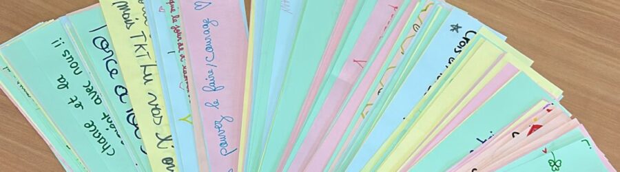 Mardi 17/02 : crĂ©ation de mots dâencouragement pour les Ă©lĂšves de 3e, qui seront affichĂ©s sur les tables lors du DNB et du CFG. Les Ă©lĂšves ont travaillĂ© sur des feuilles cartonnĂ©es et colorĂ©es en salle de permanence, accompagnĂ©s par les enseignants volontaires.