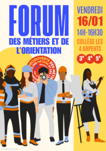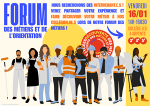 Le collège organisera un Forum des métiers le vendredi 16 janvier, de 14h à 16h30.